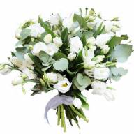 Пышный букет, состоящий из лизиантусов и тюльпанов прекрасно подходит в качестве подарка на свадьбу, другое важное жизненное событие или как извинение перед любимым человеком, другом или коллегой. Лизиантусы на языке цветов обозначают долгую и счастливую жизнь, удовольствие, а тюльпан символизирует весну и вечную молодость. Букет обладает непередаваемым запахом, который бодрит и заряжает на целый день позитивом. Красивая цветочная композиция придется по нраву близкому человеку, и вы точно увидите желанную благодарную улыбку.